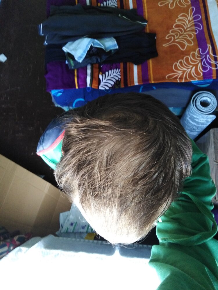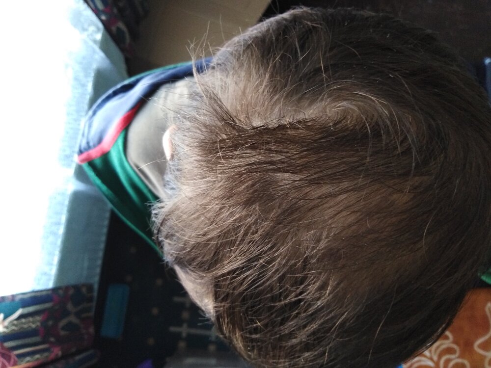 -Pic of my crown, fully covered by hair but still very short in some areas. In less intense lighting bald spot is fully invisible.