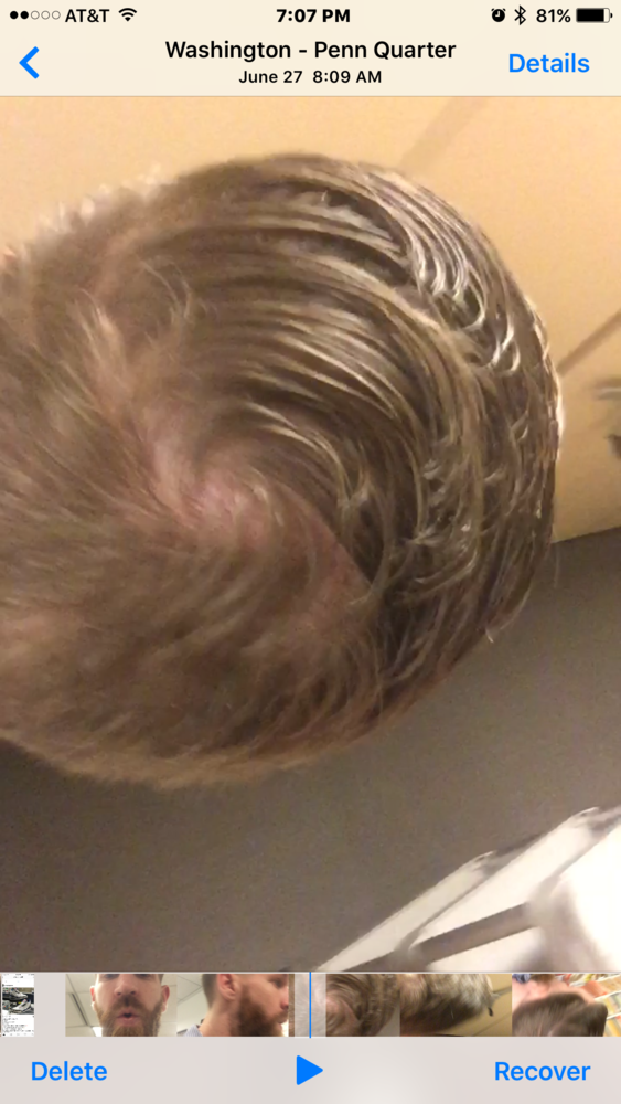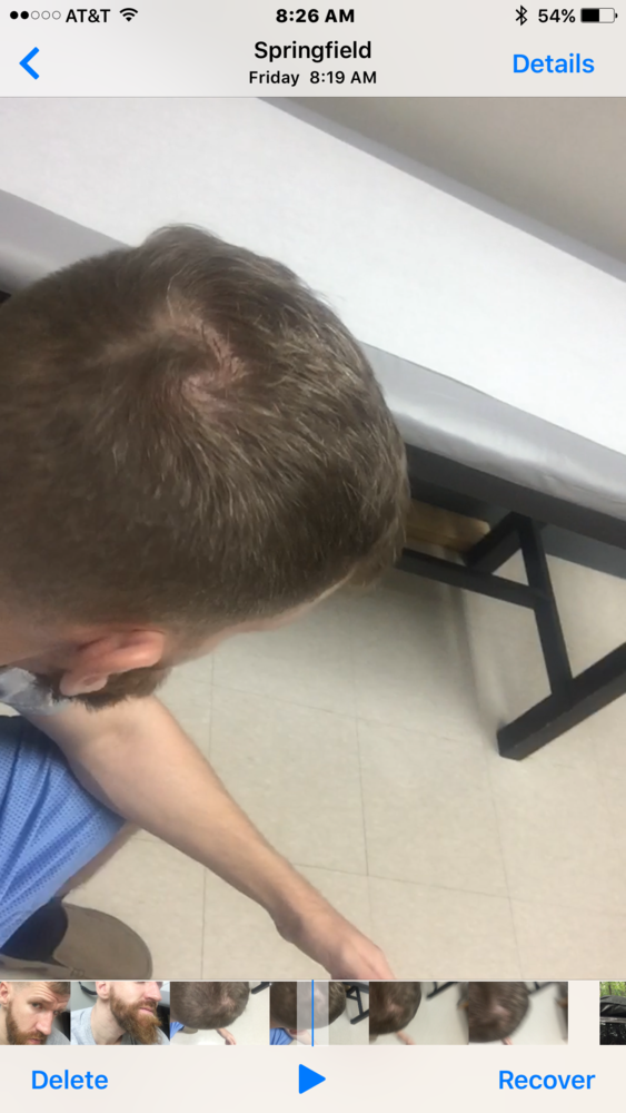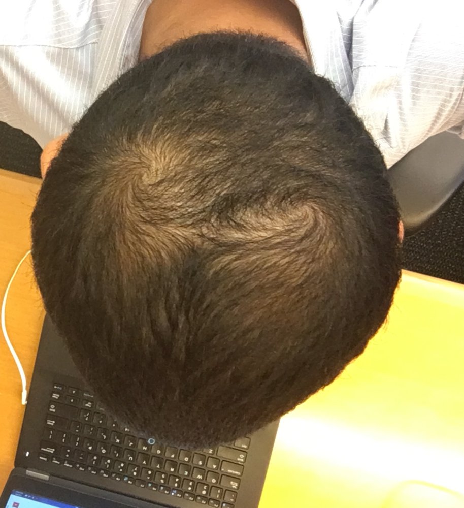 Thanks for the reply. Last pic was definitely greasy. I haven't seen much change, if any, over the past 6 months so I am hoping there is nothing to be worried about. The double cowlick/swirl does create gaps when I comb my hair but the hair around it is perfectly fine. When I comb it all straight there is just a horseshoe shaped spot that looks like a cowlick. See pics.