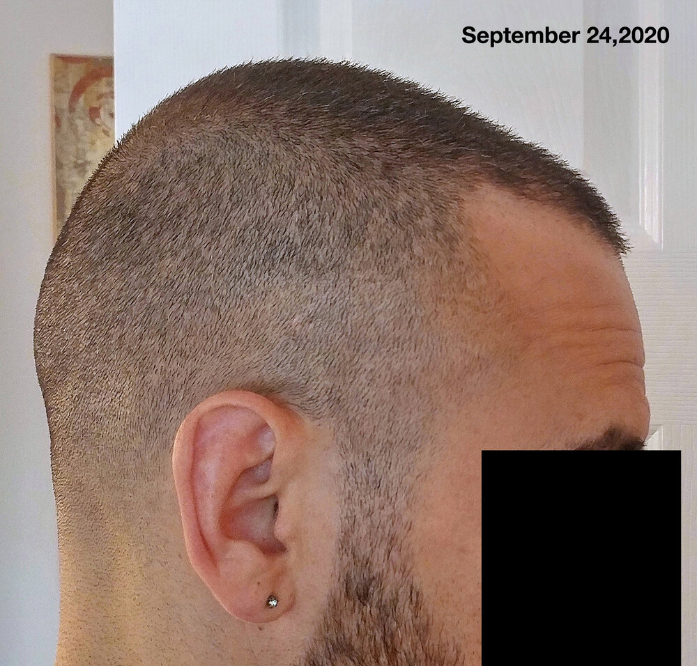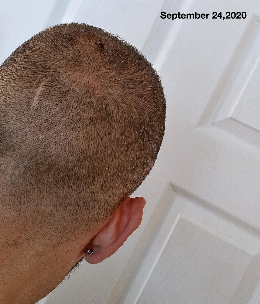 I buzzed my head last Thursday so I can see how it grows/sheds etc etc. Here are my starting pics: