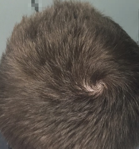 Seems I have some crown issues, which are not as noticeable when my hair is longer. It's just barely noticeable in the pic below