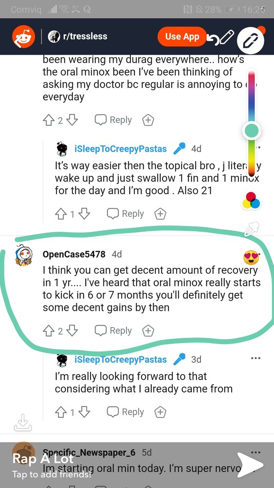 I love that a guy posted recently that finasteride/Duta/min were all out due to, well not sides but "potential sides". He advertised for help finding baldness treatments that are less effective than the Big 3 and presumably microneedling and that takes a lot of chutzpah to do and ever sketch out. I sent him to the experimental threads since they tout tons of crap that are less effective than the Big 3, that's what makes them the experts in terms of what meds and treatments to use if you don't want actual regrowth but instead seek anti-androgens with few sides related to feminization or hair. They should just call such things experimental maintenance and photograph the entire fall into complete baldness so we can calculate how long such treatments last until proving themselves to be the placebo equivalent of sugar pills.