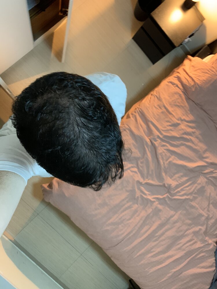 Stop taking pictures with flash, because when you look back at these photos it'll confuse you, if a non balding guys hair is messy and he takes a pic of it with flash it'll look like he's balding too. Start taking pics without flash from now on.