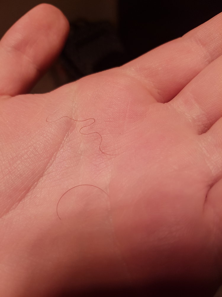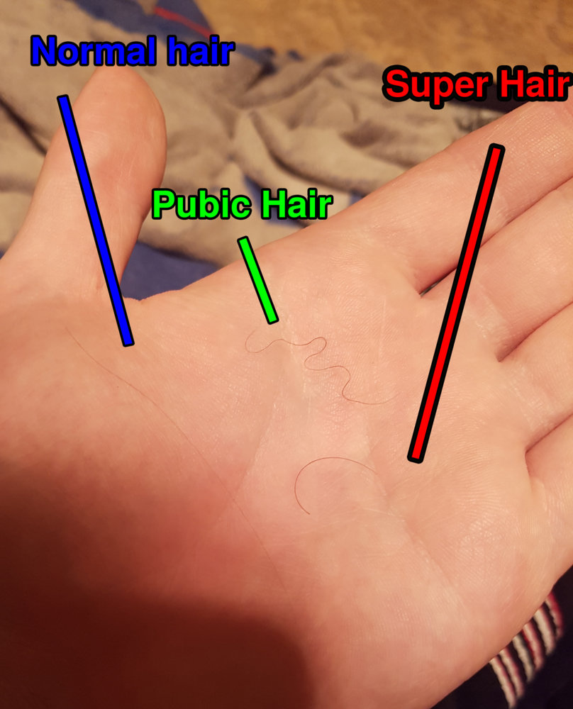 So about a month and a half ago I first witnessed my first super hair, I'm just calling it this since it came from my scalp and it's abnormally thick and strong. I first noticed one during a shower, sometimes I accidentally rip healthy hairs out when showering which probably indicates I should be more careful but regardless. I noticed this hair was abnormally thick and curled perfectly, it was incredibly strong and could support its weight under the mini waterfalls created by water running down and off my face. When I flicked it sprung back immediately and when held down upon release it sprung back into its default curled state almost instantaneously and never lost its strength or form. My initial assumption was that it was a pubic hair as I can't recall ever having scalp hair this thick although upon comparing them this hair was actually thicker than my pubic hair which has always been the thickest hair on me which is crazy, it's also much more ragged and curly so it definitely couldn't be it. My next guess was that it could be chest hair although this is still quite ragged and clearly not it. Since my first encounter I've seen a few super hairs and they are only getting longer. I've attached some pictures with a comparison of the super hair and the pubic hair versus a normal hair plucked from my scalp.