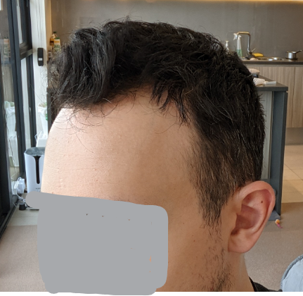 I have a NW3-ish hairline. Dark hair, medium gauge, curly and high contrast.