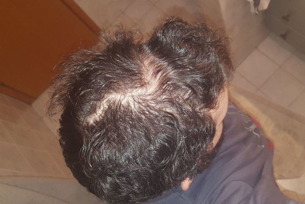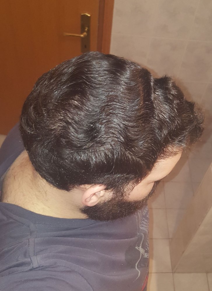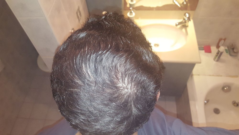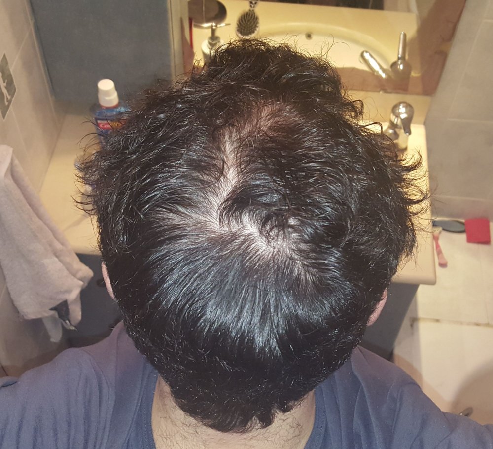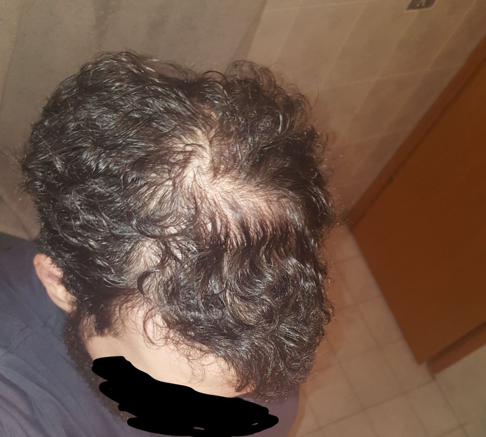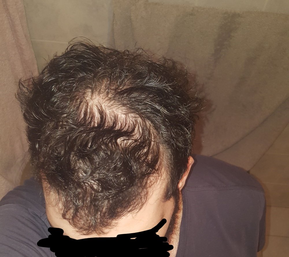 Hard to say what it looks like on top but he definitely got a lot of stuff going on around his hairline.