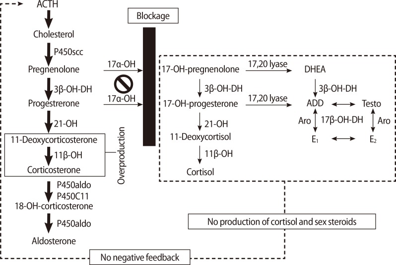 If anybody is familar with the cortisol synthesis pathway please let me know. I have not studied it enough to make any connections yet; however, I've come across a possible culprit: 17 alpha-hydroxylase/17,20-lyase deficiency. It could be possible that the HPTA suppression caused by excessive cortisol and its downstream metabolites, which are steroids after all (since CB is steroidal), are far more dangerous and damaging than the direct systemic AA effects caused by low levels of un-metabolized CB.