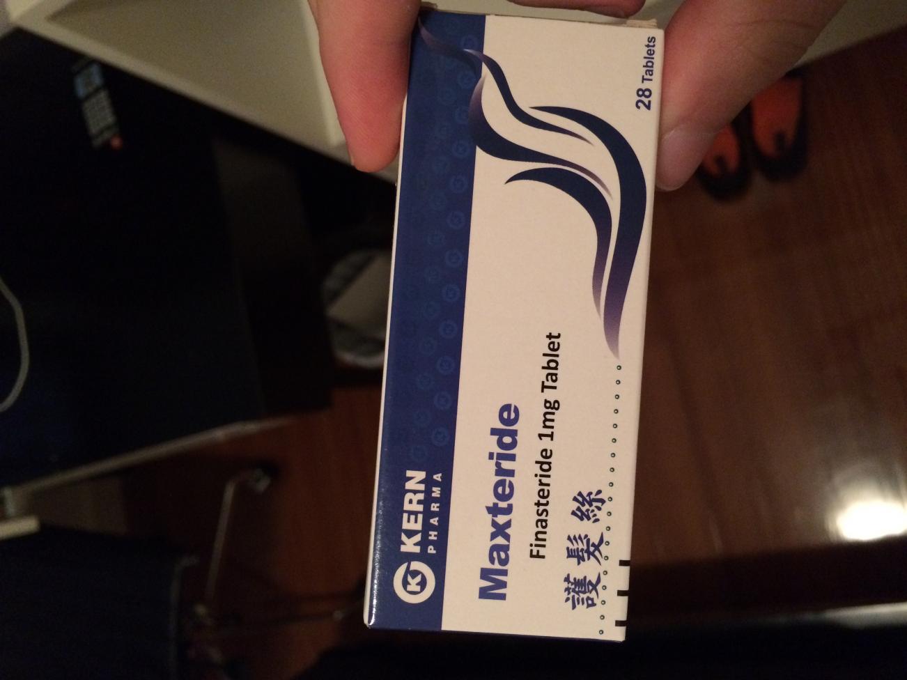 So there I was, with a smile of hope on my face and a prescription for 1 mg finasteride in my hand as I walked out, which I filled at the nearby pharmacy shortly after. $300 HKD per 28 tablet box of Maxteride brand generic 1 mg finasteride tablets, produced by Kern Pharma in Spain. This is rather expensive as dutasteride as brand name Avodart is $350 HKD per 30 tablet box (this is really cheap compared to most countries as far as I know), which I informed my dermatologist about, this is part of the reason why she's okay with letting me switch as it will be cheaper in the long run.
