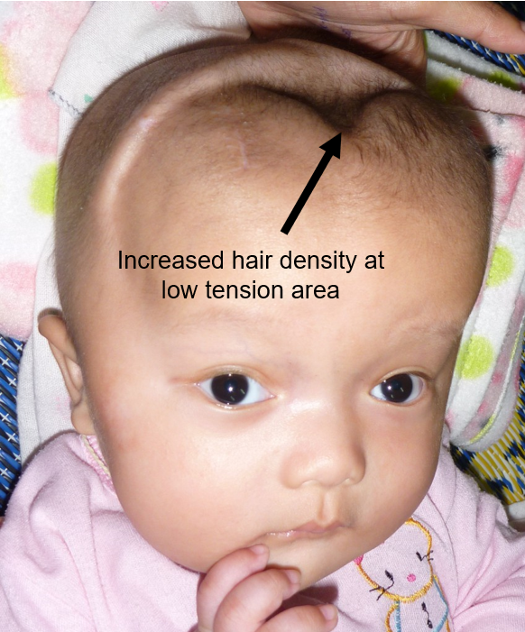 He was born with an enormous galea and odd face shape. Just look how thin his horseshoe is and the pattern his hairline was receding. The tension on his galea must be insane.