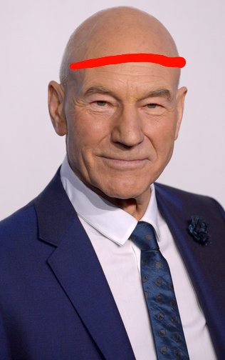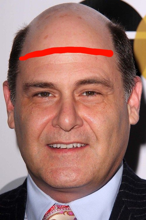 The entire top of the scalp. I drew the lines to mark where the forehead ends.