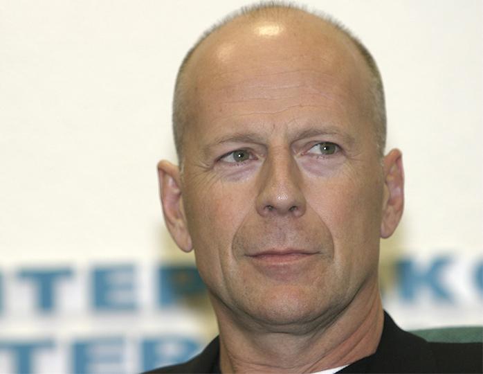 Bruce Willis has a very expanded galea and long face characterized by flat cheekbones and narrow rounded jawline.