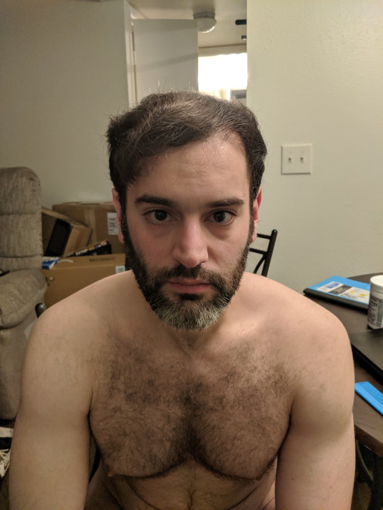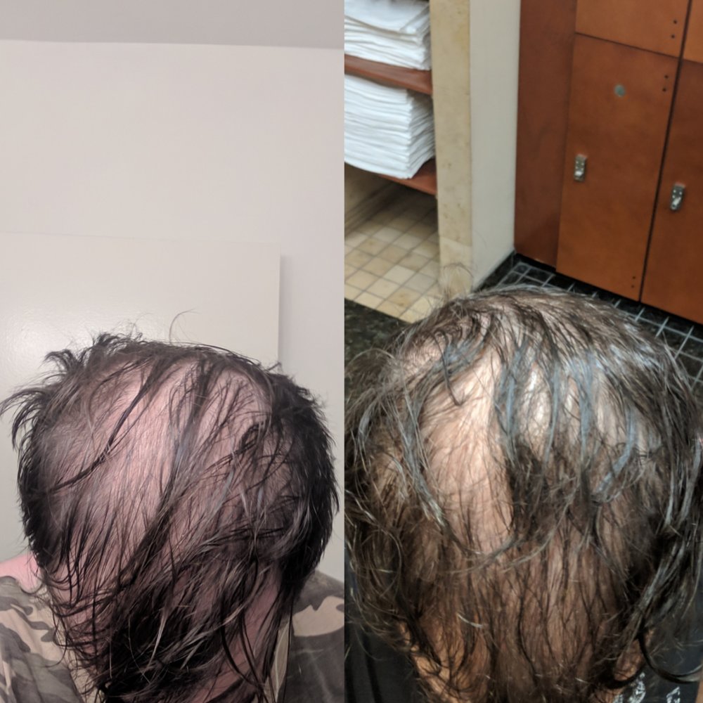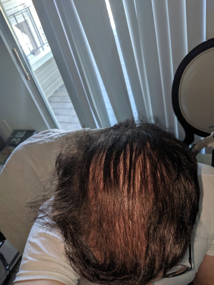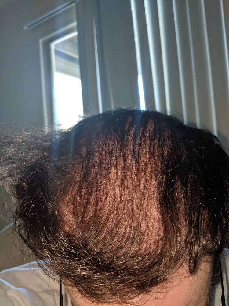 You are headed for a high Norwood if you go off treatments, I would stay on them and keep your head buzzed. It doesn't look great necessarily, of course we would all want our original thick full head of hair, but it is infinitely better than being slick bald.