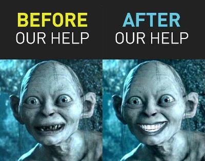 man as i posted that picture i thought the same. really is amazing what nice teeth can do, even for an ugly f****r like gollum. all he needs is a wig and his ear pinned back and he wouldnt be half bad looking