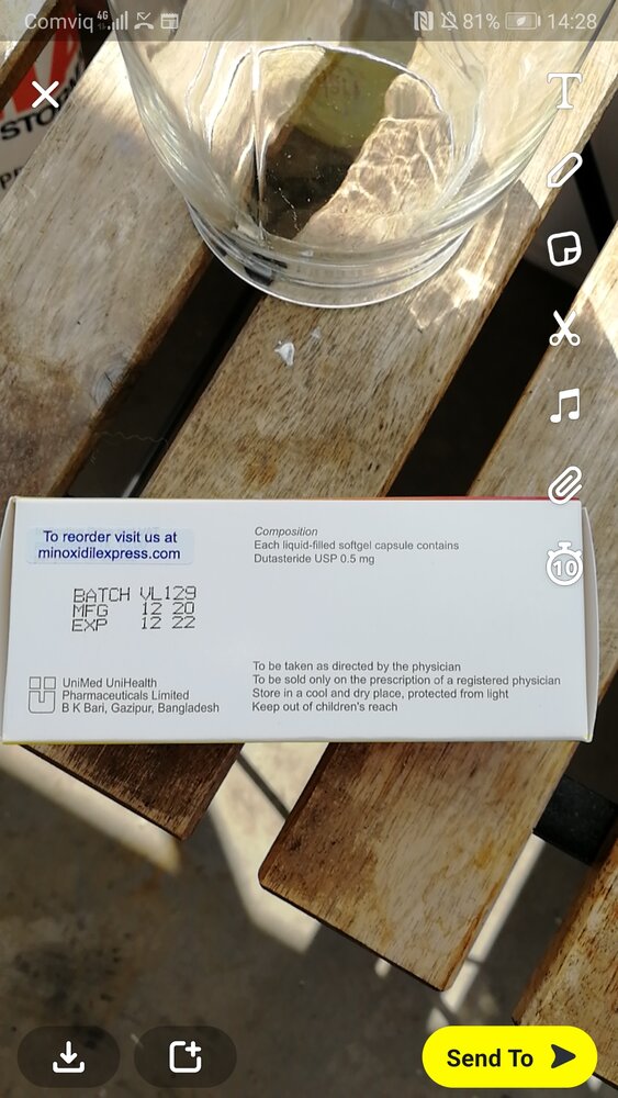 ye a dude on discord reported his evolution of 10 months treatment, his crown worsened, maybe top duta slowed down his hairloss but didnt stopped at all, he didnt needle, just applying 1 time a week, i think sometimes needle is necessary, but its not safe for sureA dude on this thread? Did he needle? I think dutasteride is a joke just lost 55 hairs in shower, I lost 7 to 10 for a few days before but I change duta brands and play with the oral dosage maybe that's why but duta seems a fail for me still. I got pills called urodart from Bangladesh it's made from unimed uni health company but it's probably of bad quality.. I just don't know, packaging looks great pills too all look legit