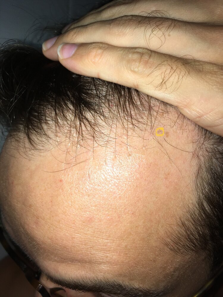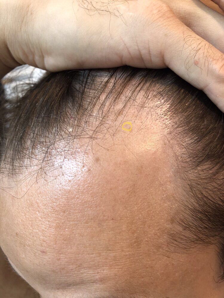 I marked a comparison spot, but also look at the area around the marker, it looks like they are spreading everywhere. I know the first picture is not the best quality but that's all I have. I just realized the quality of the uploaded pictures gets worse here on HairLossTalk.com, sorry for that so please look closely.