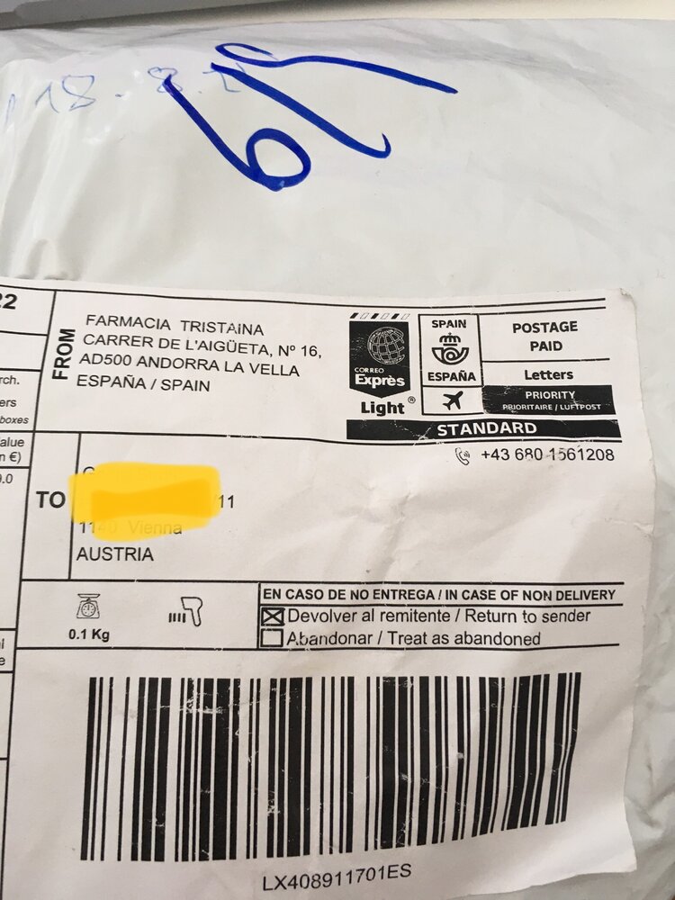 Not true, here it also states that it was shipped from Spain. So I don't know, they ship it from Andorra here. But it states Spain on the parcel.