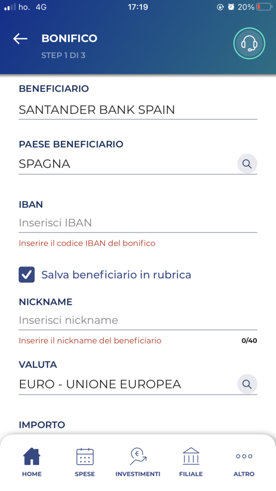 My bank ask for nickname... and for iban while fue clinic only provides swift code.