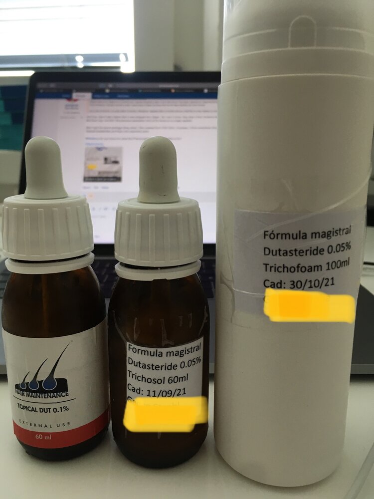 Only Topical Dutasteride 0.1% in Trichosol once a week since June 1st from FUE Clinic and since July 1st from PharmaciaenAndorra: