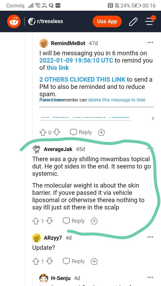 Tbh this whole thread is about mustang trying to make you all buy 'thrishosol' dutasteride from dr mwamba and is bashing other mixed solutions despite them being made by professionals like those from Murray Avenue apothecary for example that use alcohol and pg in their formula. He claims topical duta will only work if you use thrishosol or liposomal . Fact is sonic temples use an alcohol solution and empty a duta capsule into it and had hairline regrowth without needling. Mustang is a liar a fraud and a manipulator. And he hasn't showed any proof that alcohol/pg is ineffective. Just his empty words.