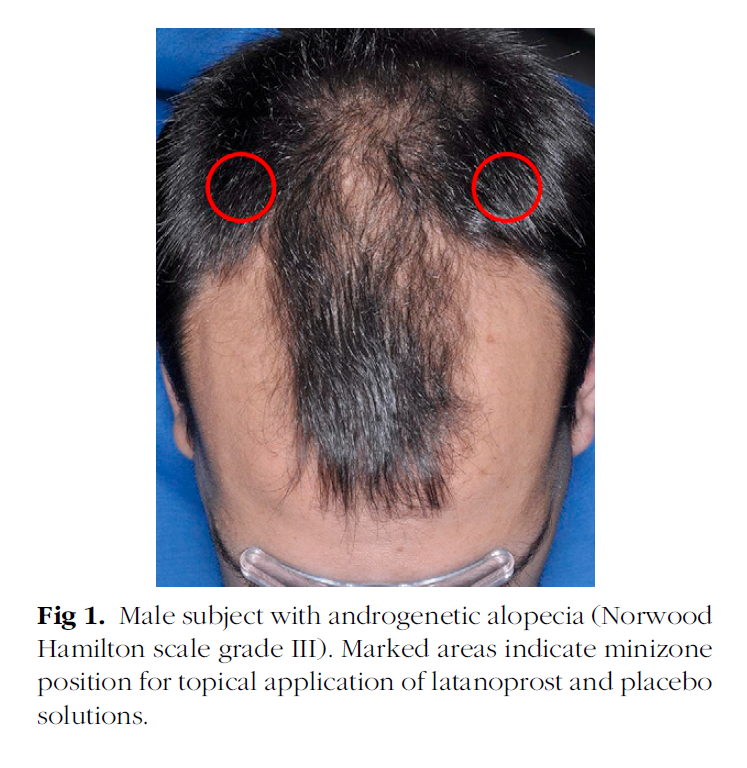 CONCLUSION In this pilot study, latanoprost significantly increased overall hair density and the number of vellus and terminal hairs compared with baseline and the placebo-treated area after 8 weeks of topical treatment. This suggests that latanoprost could be useful for treating androgenetic alopecia. More research is needed to determine the optimal dose and treatment duration of latanoprost or other candidate prostaglandin analogues.