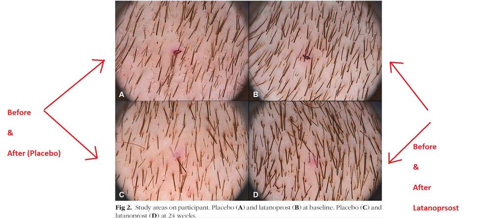 - Latanprost seems to have some regrowth. Even placebo seems to be doing something which is strange.