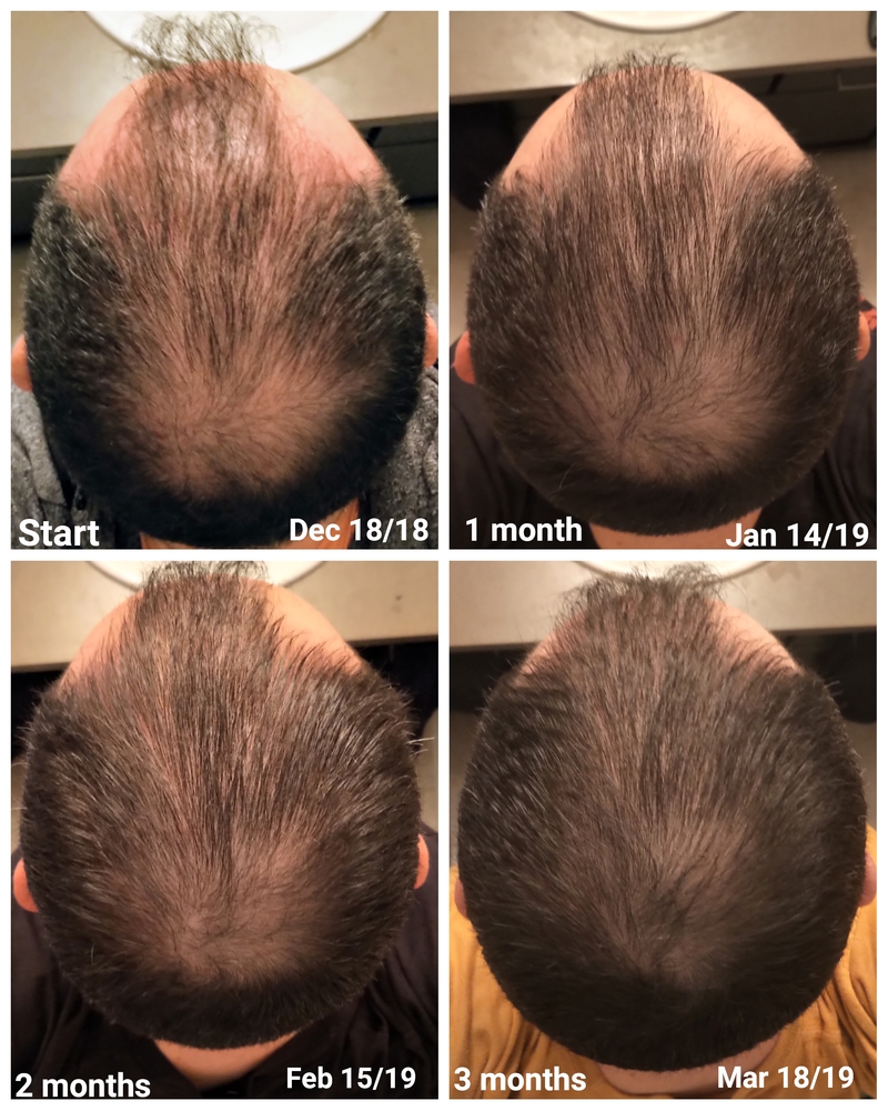I'll try to put together a front comparison again as well, or some from different angles if I can piece together some similar photos. My temples are fairly receded and there isn't much progress there. I did have some stray hairs pop up out of nowhere at the hairline initially, but not much action since.