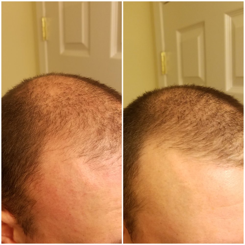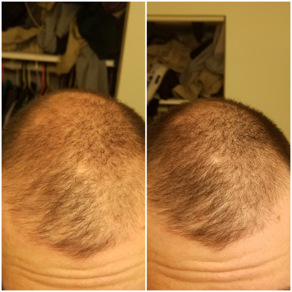 And like my previous 2 explorations into this, I saw small results after 4 weeks or so. Now I keep my hair buzzed pretty regularly, usually. For better pictorial evidence keeping, I let it grow for 3 week periods and then buzz down to lowest setting, no guard.
