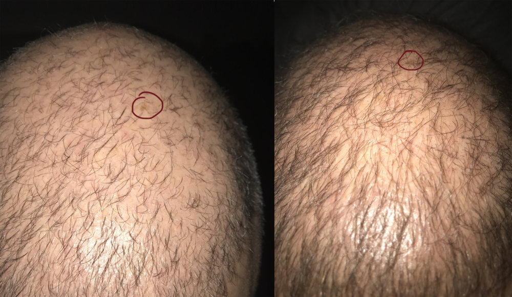 It would be depressing to know that dutasteride was actually responsible because I like the picture released by Follica which shows a change in less than 3 months and I seen a very similar reduction in bald spot like that guy in the pic. It only coincided with needling every other day(now I'm doing this 3 times a week and I intend to do that until I recover everything).