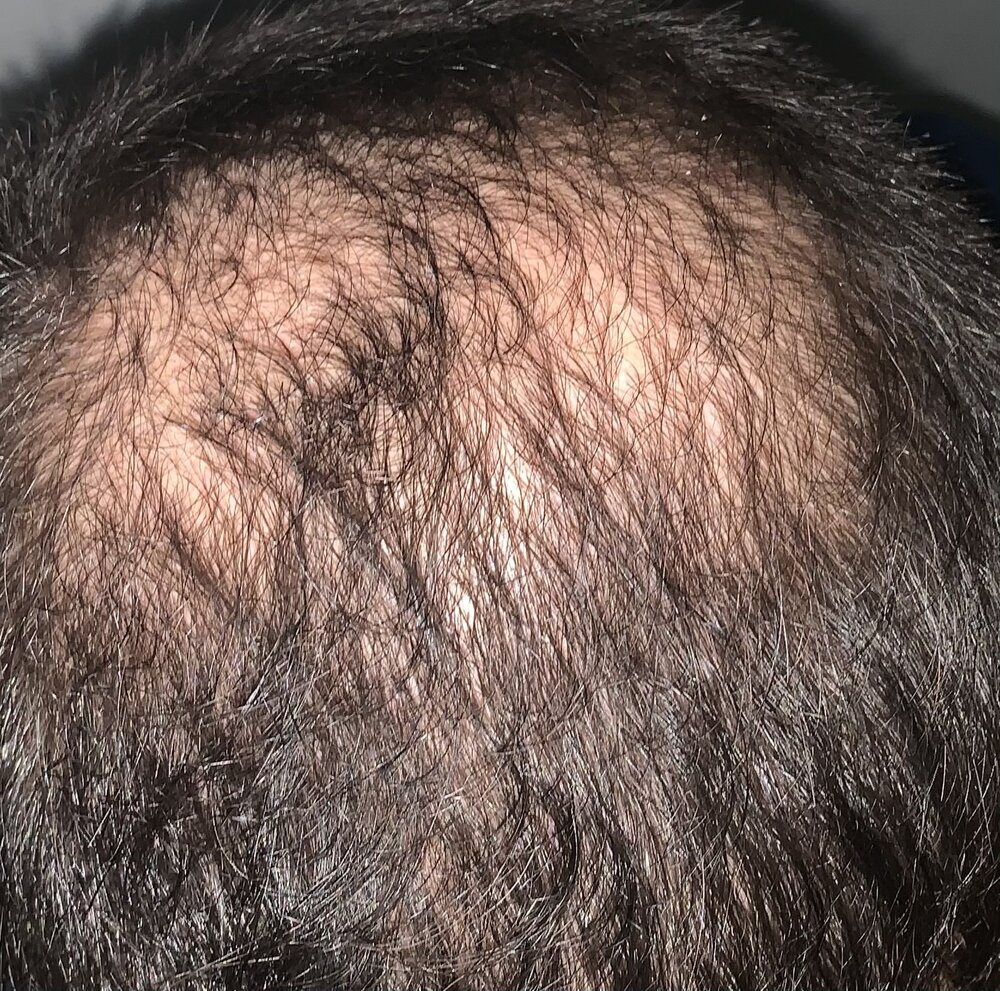 Obviously the more holes you make, the more you bleed. I've had sessions with three days of redness and not seen any visible improvement. However, those times I had 10 days of redness, I saw some improvement. (I did it at 1mm depth, shaved head, and only for a temples, 4sqcm areas each. Imagine doing this for the whole hairline and vertex, ouch!) You need to shave your head, otherwise you won't be able to wash off the blood and you'll need to wear a hat for 3 weeks.