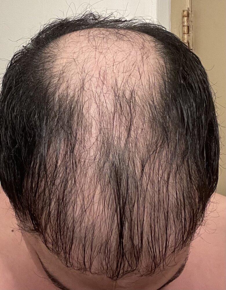 Please give me your opinion about these results. To me, these are very dramatic results, in very little time. I started Sept 10th 2021. But I would like 2nd opinions. Forgive me in advance about the blurriness of the before pic. You can still the results, they are too visible to not see even with a bit of blurriness. I tried my best to mimic the same light, same location (bathroom), same positioning of the head, and same hair length.