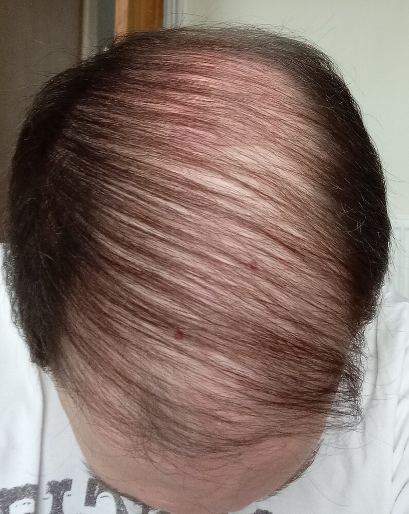 Here's a before and after for me quite a few years on. I have a Dr pen dermapen which I use at 1.75mm once or twice a week normally Tuesday and Sunday (not always twice a week). I also have a stamp at 1.5mm which I very lightly press on before I apply Kirkland minoxidil liquid 5% every other day. I have used Finisterde twice in the past but both times brought on sides that I wasn't willing to put up with long time. First was pill for over 6 months then a few years back topical from hims which I used for 6 weeks and got similar sides. Here is my hair from nearly 10 years ago and today. ( Sorry the previous ones are smaller, I just screen shotted them from my previous posts, so you should be able to find original. I also had my hair dyed black on the previous smaller pics- I'm naturally brown dark brown.) I know I have my hair in a comb over style but can you see any improvements? I use dermmatch and hair fibres and honestly it looks great when I do (obviously not on these pics), I just wish I could go swimming or be more adventurous without worrying about it looking like Sh1t. Cheers, hope you are all doing ok.1st and 2nd are from nearlyb10 years ago. Last one is today.