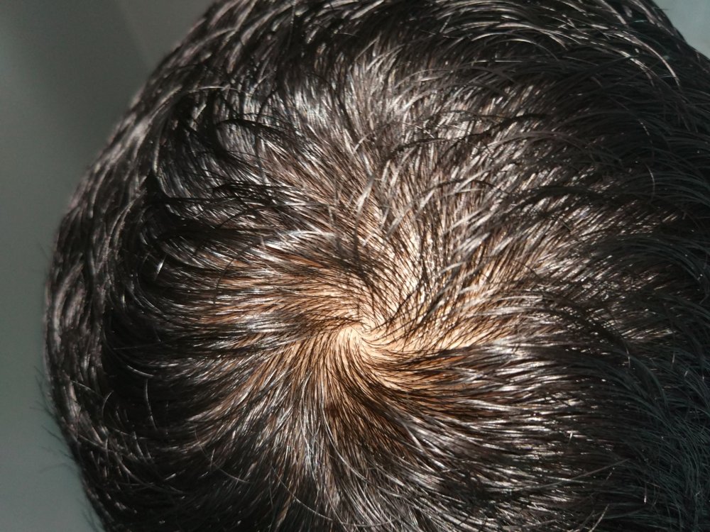 I looked at my crown area after getting back home, and I'm actually not too sure whether I am balding or not. I have pictures of my scalp from 6 years ago and it don't see much difference, except of course for the longer hair.