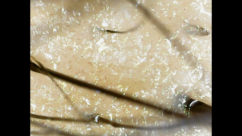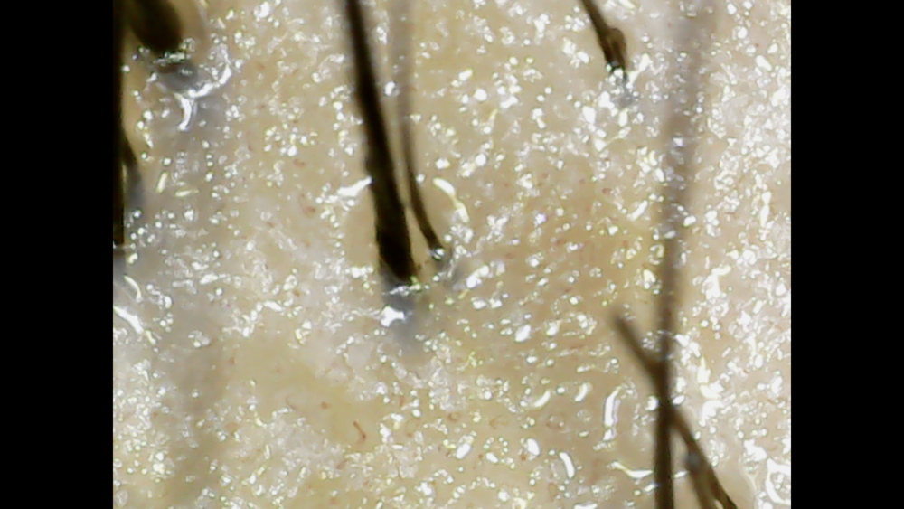 Below are the pictures I took from a USB microscope. My head has been itchy forever and I don't know if these spots are related. I do use a shampoo scalp scrubber so it could be scarring from that but it looks like it's underneath the scalp?