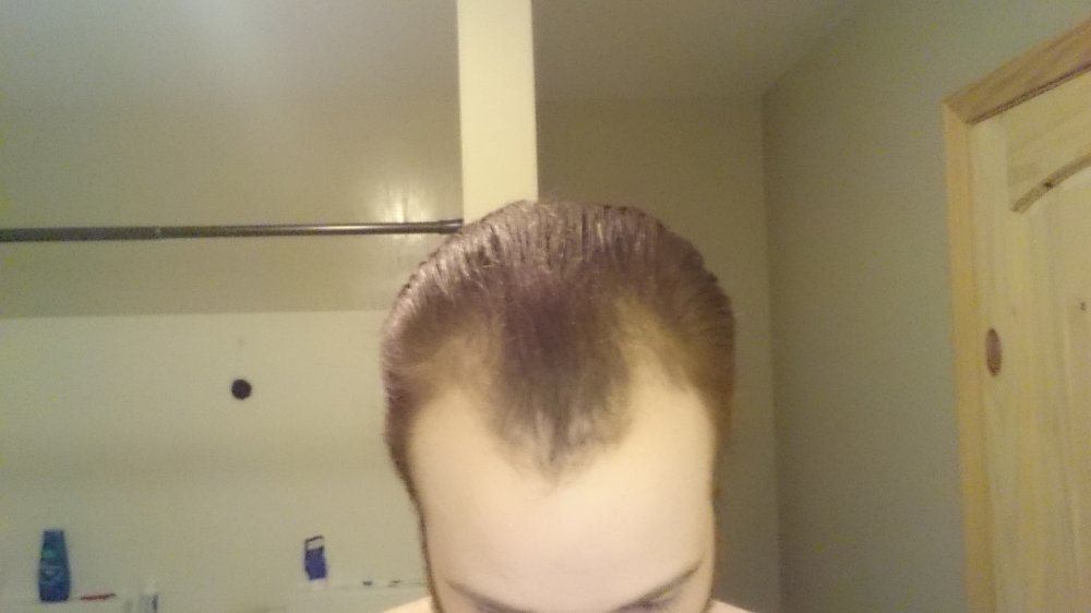 Just another little update. Bald patches along each side of the forelock are filling in nicely. First pic is first day back on minoxidil, second pic is today, which is just over three months.