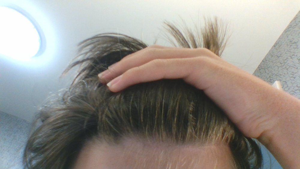 Hello again, I am 14 years old.. I believe I have some minor recession at the temples and some thinning along where I part my bangs and that area in general..