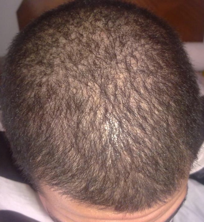 he doesnt have hair loss. a dermtologist confirmed that becuase he wasnt given finasteride or dustasteride.Diffused hairloss. Get on finasteride if you are not.