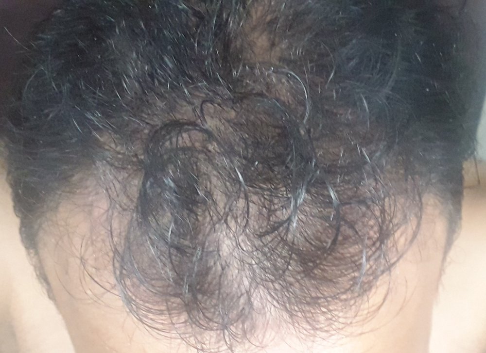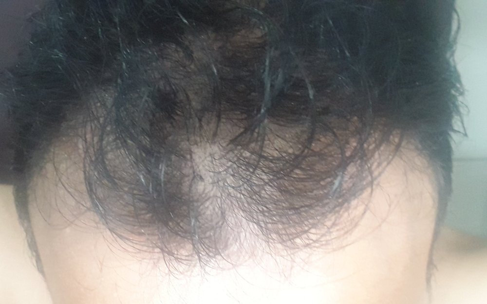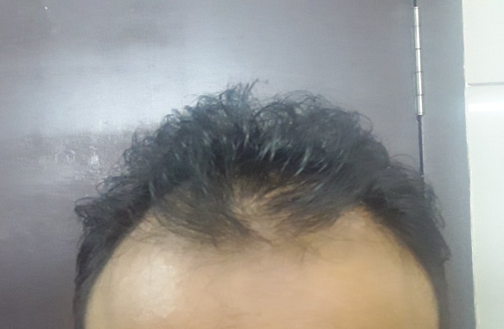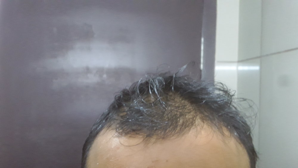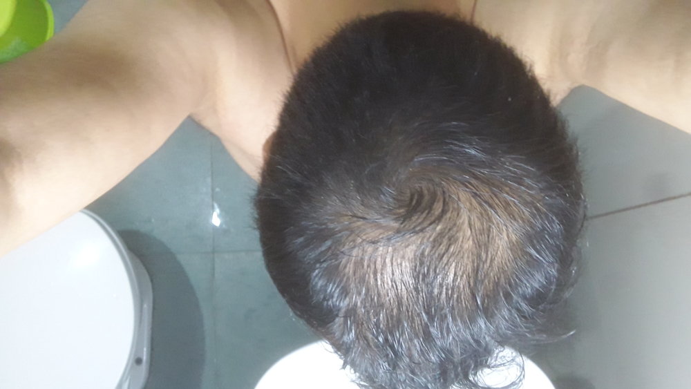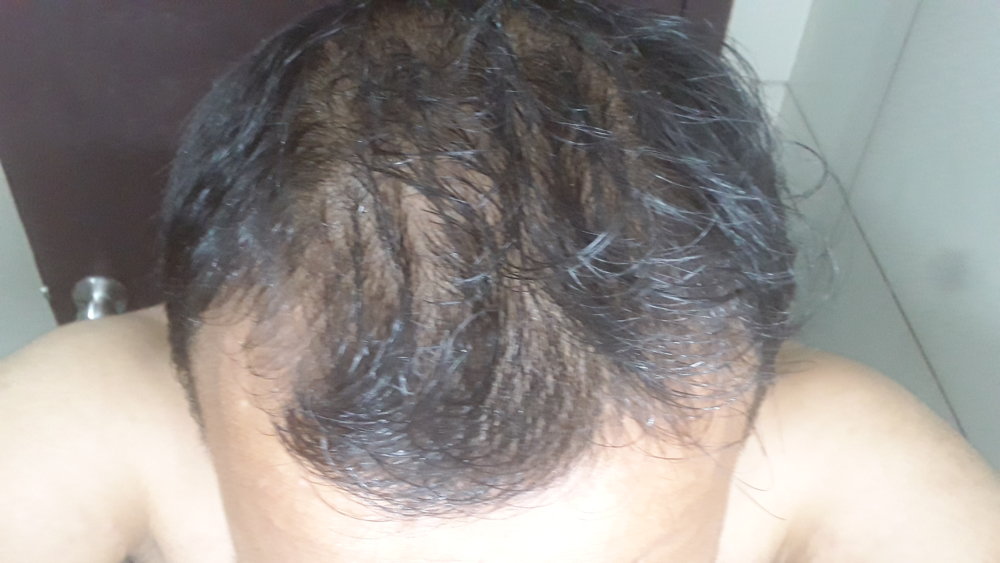 My doctor prescribed me 10% minoxidil along with some vitamins tablets. Those pictures were taken just after I applied minoxidil, made my hair really sticky.