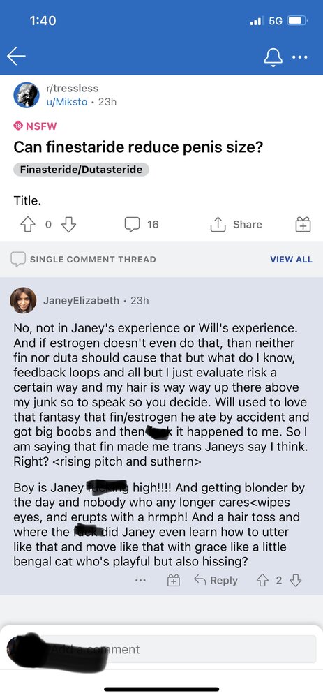 Again, just trying to clear your name lol. I suspect you may be playing with a few cards shy of a full deck.My view on Estrogen is similar to bridgeburn, noah etc. Janey is just a sissy fetishist. I was friends with her yes, just like with every other person on here who was being nice to me. She tried to groom me in DMs ffs, do you not understand. I told her to leave me alone before all of this drama exploded. So don't gaslight me.