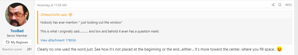 You posted that nobody mentioned the word just. Well I certainly did.... because that's been the POINT OF TOPIC... Me identifying your use of "Just" as an unnecessary filler word..... and you claiminging it was nessisary to use...