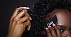 For those of you with noticeable skin showing through your hair, COUVRe can be applied very easily. Simply comb the hair away from the thinning area. Rub firmly and blend into surrounding hair for natural appearance. Style your hair as usual, using comb, brush or blow dryer. Using the provided applicator, you may apply COUVRe to either damp or dry hair. COUVRe resists water, but removes with normal shampoo. COUVRe contains no dyes and cannot clog pores. Use daily for best results.